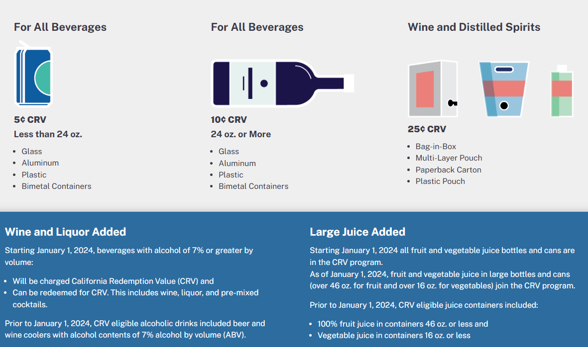 As of January 1, 2024, wine and spirits are eligible for CRV