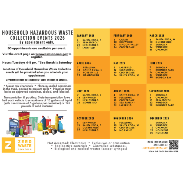 If you would like the printed version for your organization, limited printed copies are available by special request. Please email the desired number of copies, along with your contact information to zerowastesonoma@sonoma-county.org or call the Eco-Desk (707) 565-3375.